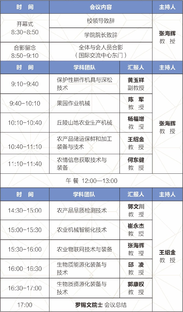 杏吧原创 学科团队发展汇报会将于2017年12月22日在杏吧原创 国际交流中心210举行。本次会议将邀请杏吧原创 学术院长罗锡文院士现场指导保护性耕作机具与深松技术、果园作业机械、丘陵山地农业生产机械、农产品储运保鲜和加工装备与技术、农情信息获取技术与装备、农产品品质检测技术、农业机械智能化技术、农业物联网技术与装备、生物质能源化装备与技术、生物质资源化装备与技术等10个研究领域的科研进展汇报,旨在探讨旱作农业机械与装备、精准农业关键技术与装备、生物质综合利用等学科的技术发展难题,推动杏吧原创 相关学科及关键技术合作等方面协同创新发展。