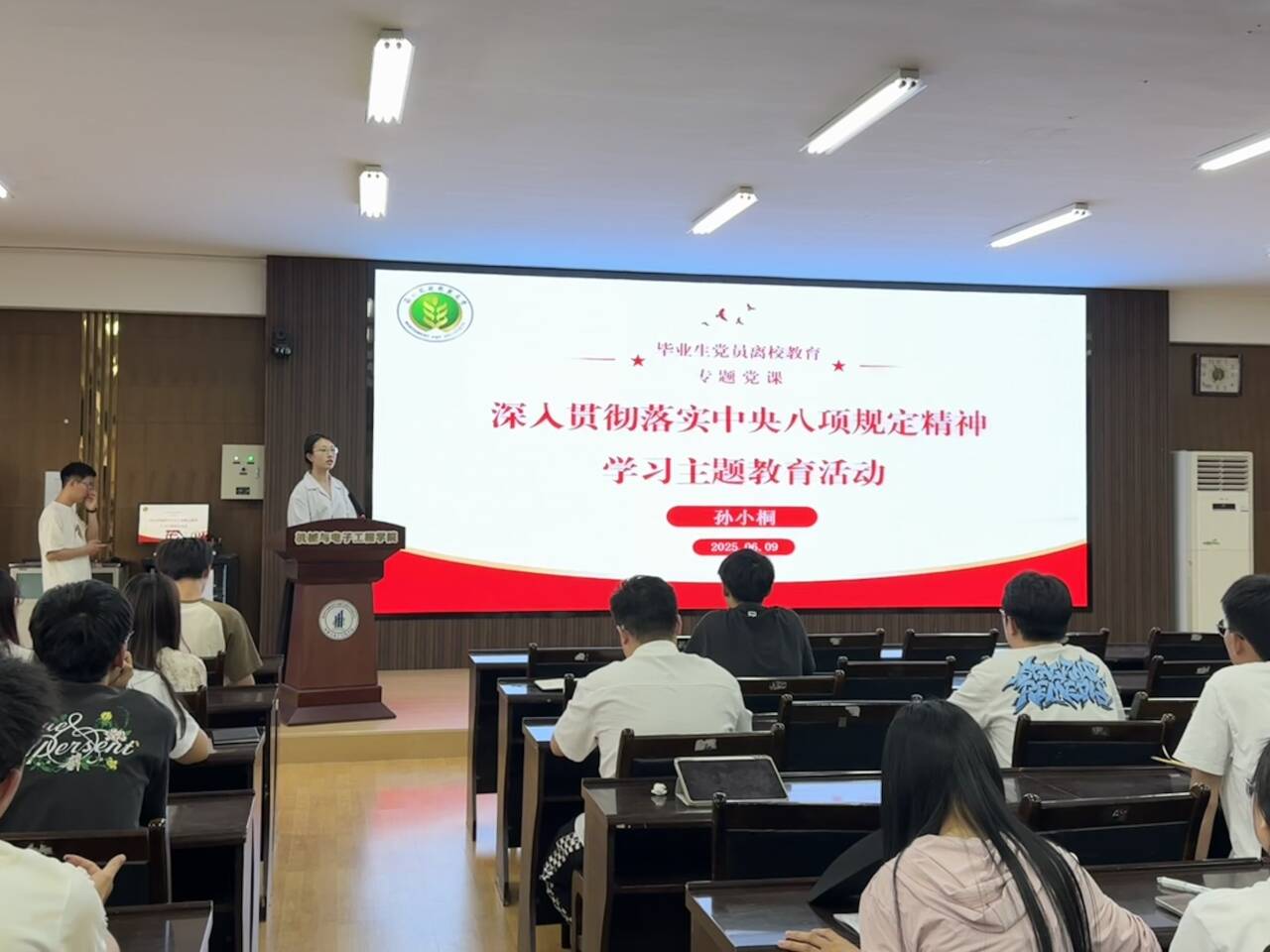 为持续深化作风建设,筑牢党员干部纪律防线,专硕第二党支部于6月9日组织开展“深入贯彻落实中央八项规定精神”专题党课。党支部书记孙小桐同志担任主讲,支部全体党员参加学习。