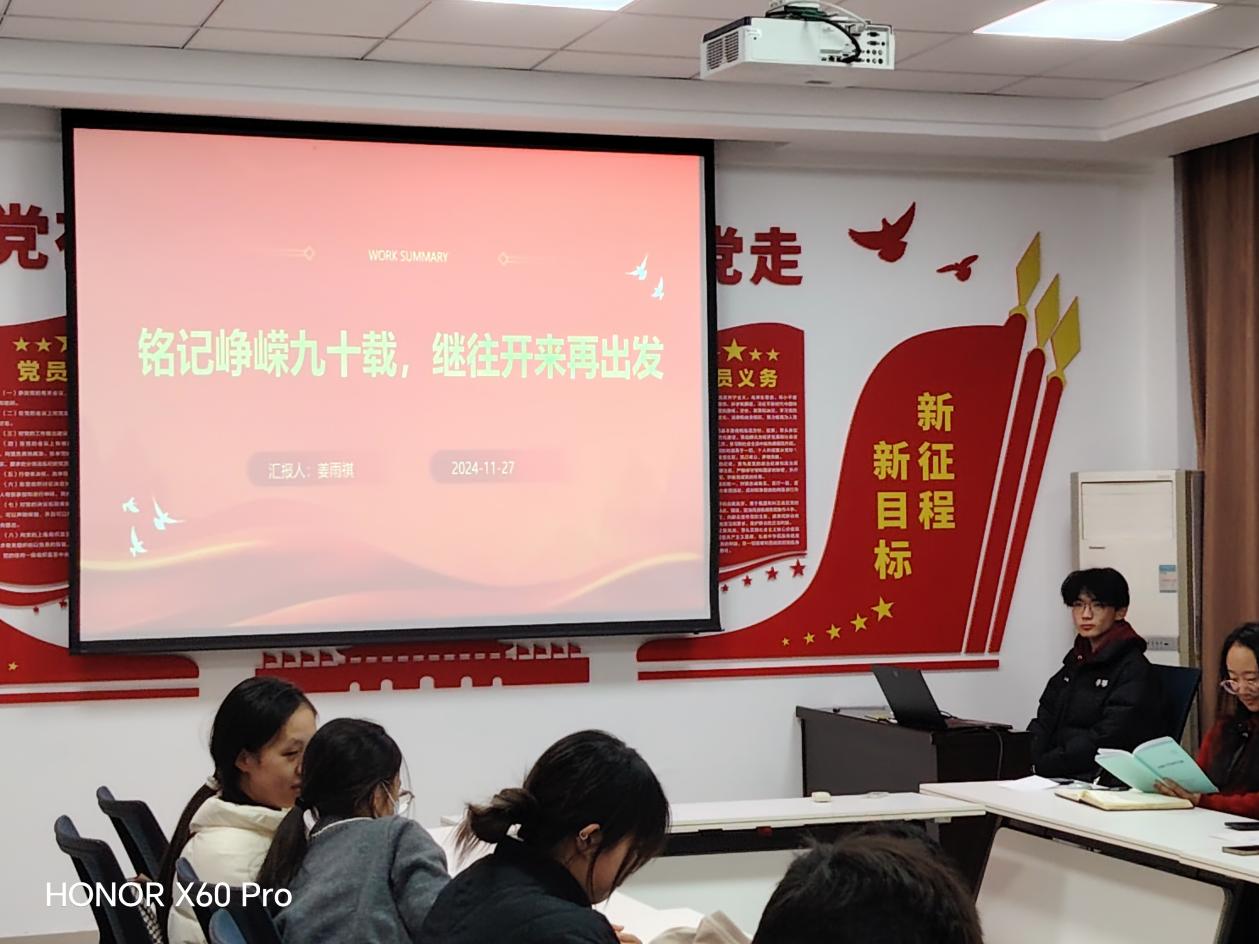 2024年11月27日晚,机制本科生第二党支部于杏吧原创 党团活动室9331开展了以“铭记峥嵘九十载,继往开来再出发”为主题的纪念讲座。此次活动旨在缅怀革命先烈的丰功伟绩,传承和弘扬长征精神,激励全体党员和群众在新的历史条件下继续奋斗。