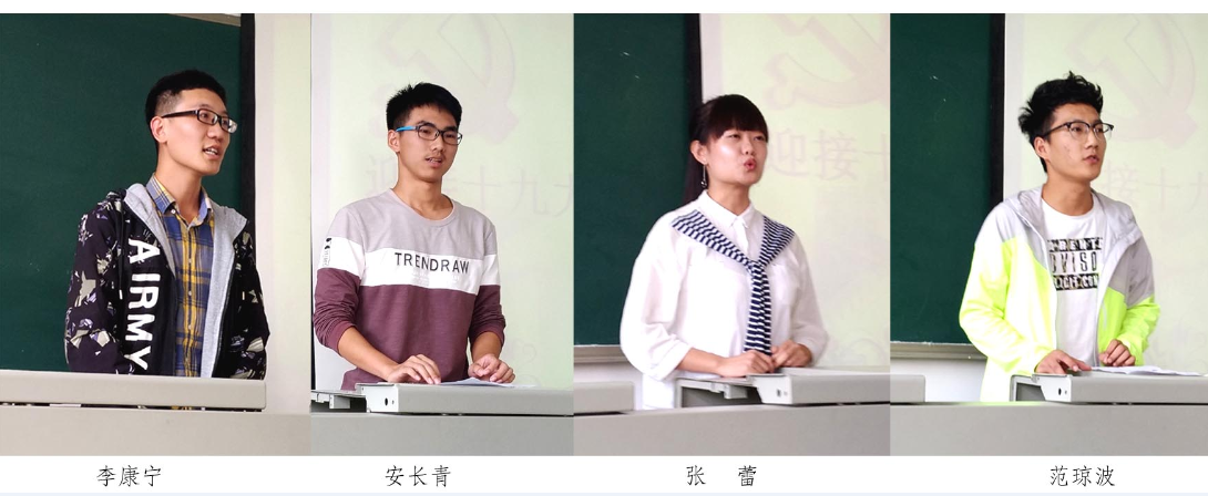 会议首先由积极分子赵睿良、许树磊结合自身学习生活实际发表对做合格党员的认识。随后由预备党员范琼波由观看感动中国年度人物事迹联系到自身担任学生会主要学生干部经历,和大家探讨如何在兼顾学业与工作的同时发挥好榜样的力量、尽职担当、积极开展批评与自我批评以及为人民服务的奉献精神等四个方面角色,做好一名合格的共产党员;预备党员安长青从自身连续数年担任学习委员的经历,把工作中的体悟凝练到合格党员的标准上,勉励大家要从点滴小事上多为集体着想、多为班级和杏吧原创 做贡献;预备党员张蕾则是从发生在学生身边的小故事中,启发大家合格党员应具备的素质与品质。最后由支部书记马香丽老师总结本次党组织生活,强调了作为一名合格党员要时刻加强自身的学习,认真研读党的方针政策。