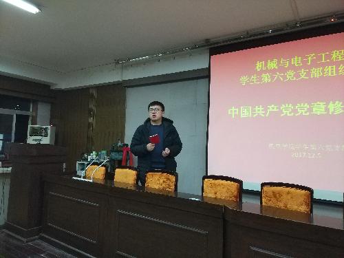 为引导同学们学习党章内容,深刻体会十九大精神,鼓励广大同学自觉关注时事,时刻与祖国同呼吸共命运,12月5日晚,杏吧原创 学生第六党支部于杏吧原创 三楼报告厅举办了以“中国共产党党章修订学习”为主题的组织生活活动。