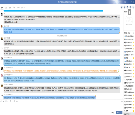 受疫情影响,本次学习采取线上学习的形式,分别从何为国家安全、当前国际国内形势、危害国家安全的行为及相关罪名、如何维护国家安全、谁来保卫国家安全五个方面进行了学习,并结合国家安全教育的视频对国家安全的重要性进行了学习,倡导广大学生党员、积极分子要带头学习有关的法律知识、积极向周围的人做国家安全知识的宣传、培养关心和维护国家安全的思想。学习后,支部成员们积极为国家安全发声,分享自己的感想与体会。