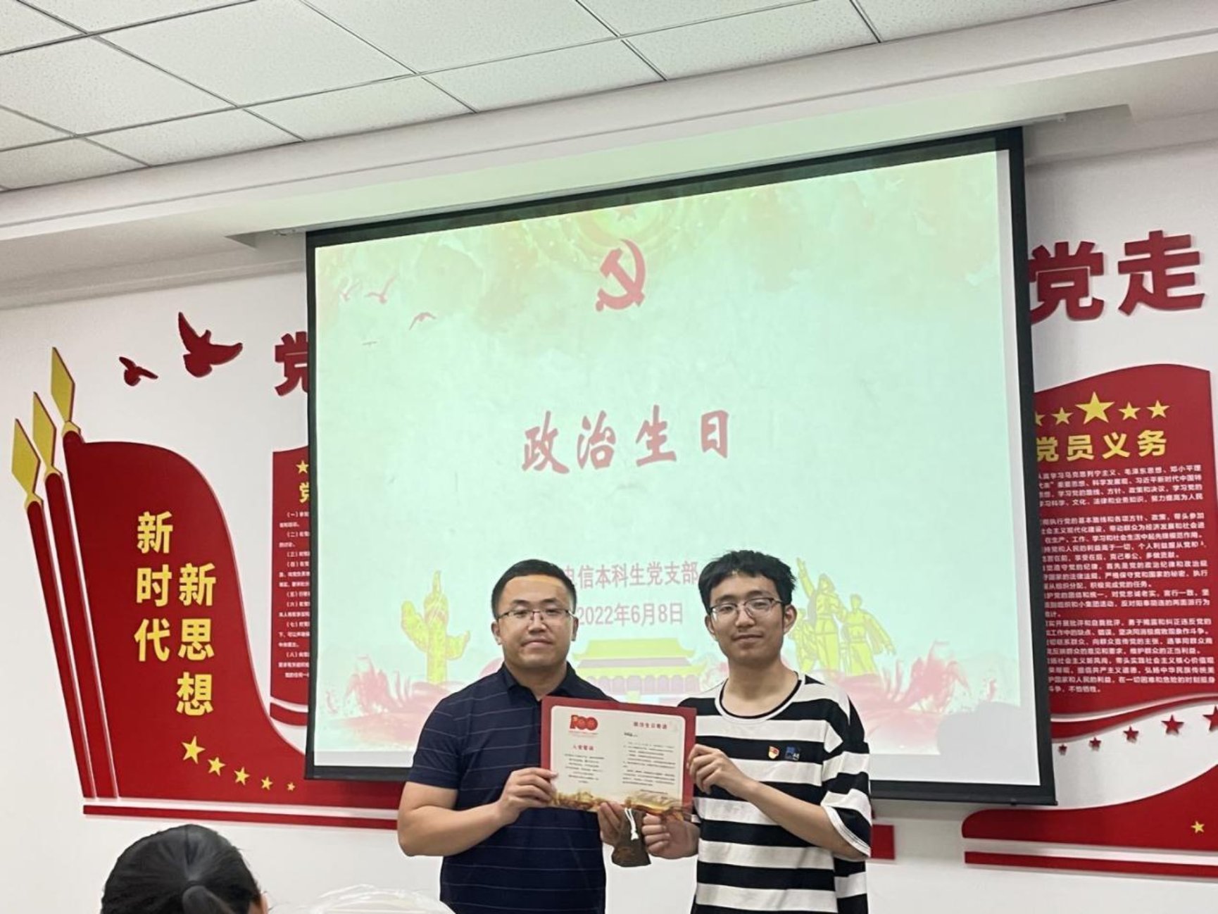 在拿到自己的政治生日贺卡和纪念戒指后,黄泓晔同志感慨发言:“这次的政治生日和毕业会活动,让我再次真真切切感受到了党组织对我的关怀,感受到党支部这个大家庭的温馨。我会把这枚戒指一直带在我的身上,每当困惑迷茫的时候我都会想起它,想起我入党的初心。”随后,支部成员进行了唱歌等才艺表演,才艺表演进一步拉近了每个人之间的距离,也给了个人向大家展示自己的机会。大家说说笑笑,情到浓处许多人都湿润了眼眶。电信本科生党支部是一个有感情,有温度的支部,每个人都为能成为这个支部的一份子感到快乐和庆幸。