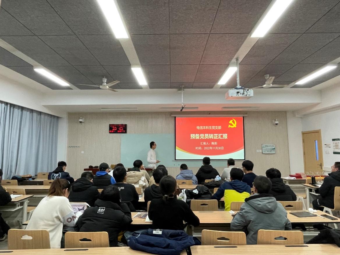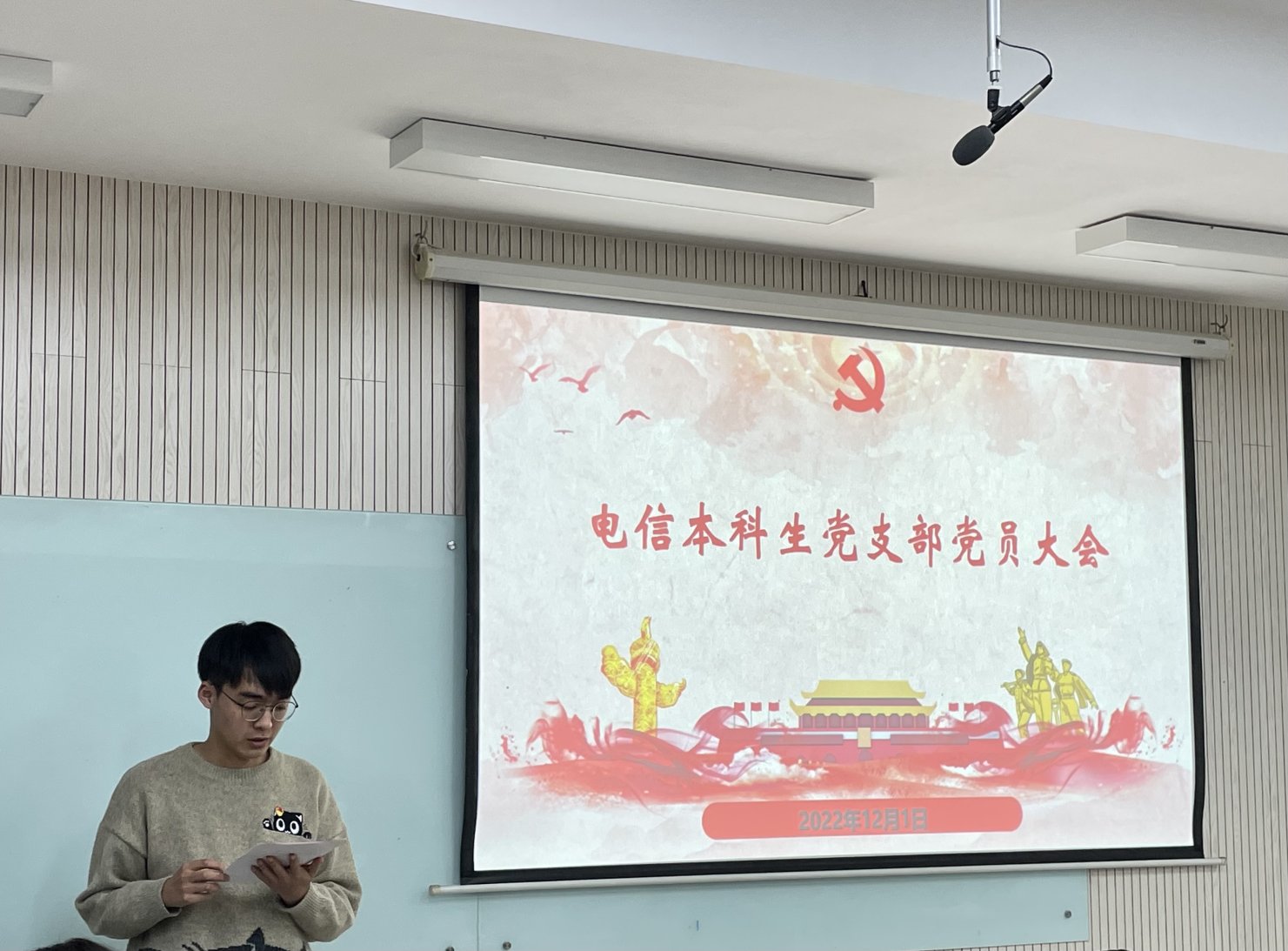 根据杏吧原创 党员发展相关工作安排,按照《陕西省发展党员工作规程(试行)》规范要求,电子信息工程本科生党支部于2022年12月1日晚7:30在N8111开展关于讨论确定接受文晨等5名同志为正式党员的党员大会,会议由支部组织委员秦泽倩同志主持,支部全体党员、预备党员参加会议。