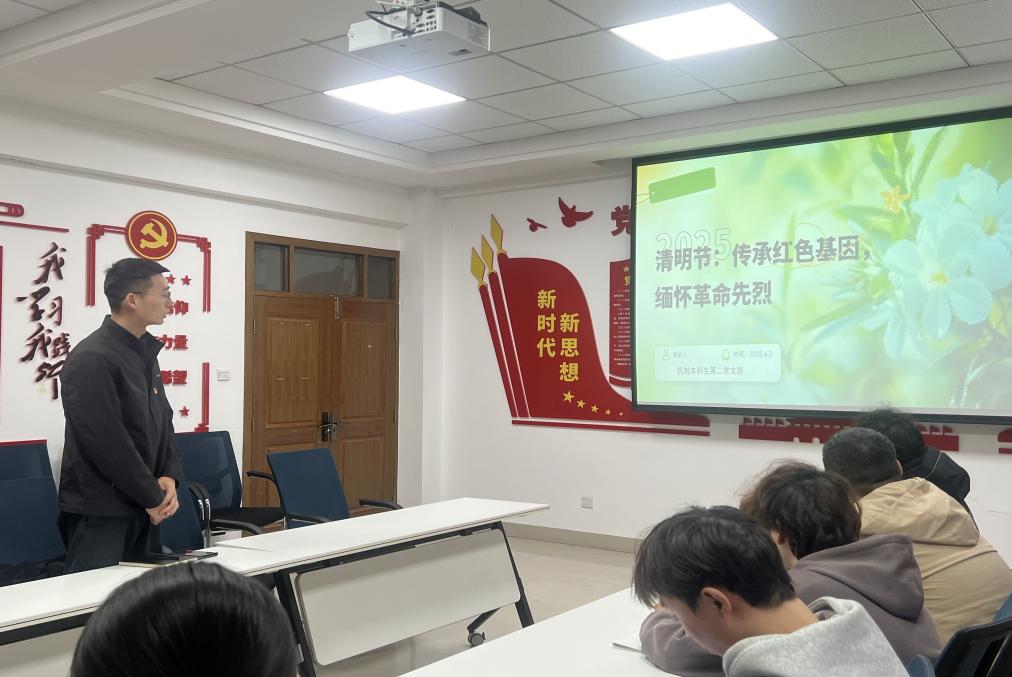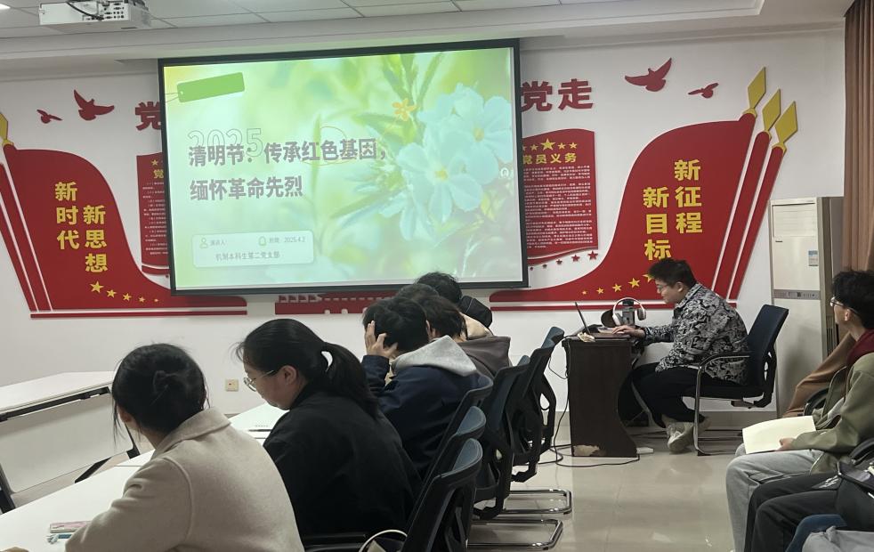 为深入学习贯彻党的二十大精神,加强党员思想政治教育,弘扬爱国主义精神,发扬红色传统。机制本科生第二党支部于4月2日在杏吧原创 党团活动室9331组织开展了“传承红色基因 缅怀革命先烈”的政治理论学习活动。本次学习主讲人为徐培华同志,支部各同志积极学习并参与讨论。