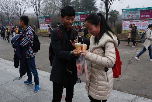 为女生分发早餐