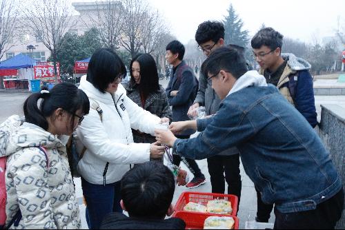 “起早很困难,早晨很冷,搬的早餐也不轻,不过当看到女生们拿到早餐冲我们笑的时候,感觉很开心,做的一切都是值得的,希望机电的小仙女们开开心心度过每一天,女生节快乐!”