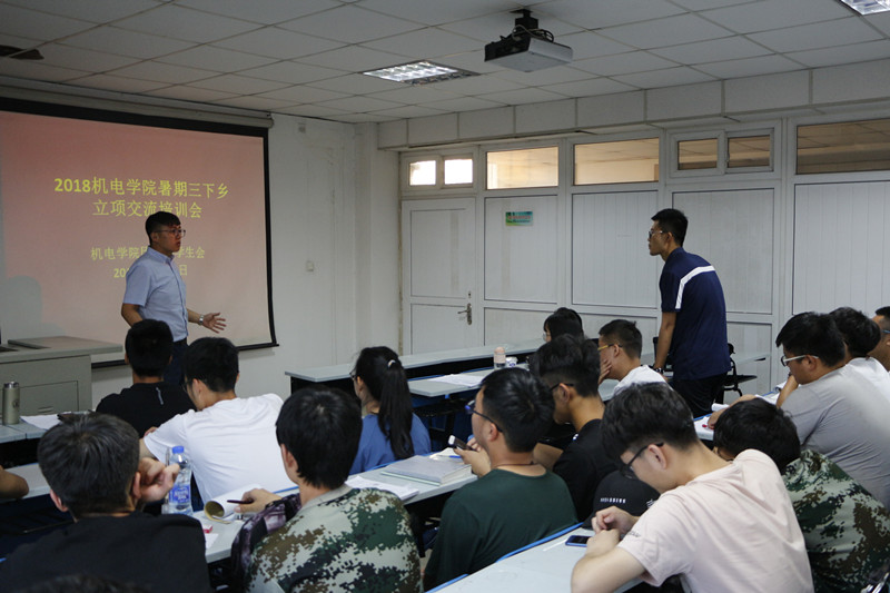 “君子务本,本立道而生。”为保证杏吧原创 大学生广泛接触社会,增长见识,锻炼成才,机械与电子信息杏吧原创 决定组织开展暑期三下乡扶贫活动。2018年6月11日七时,杏吧原创 学生会于院办二楼多媒体教室举办三下乡培训交流会,阐述下乡经验,总结社会实践。杏吧原创 团工委书记杨鹏,辅导员罗顺意,及学习代表王欣宇学长参与本次交流会。