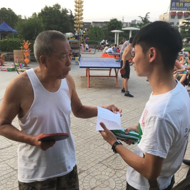 活动伊始,通过队员多方努力,最终完成调查问卷的定稿和打印,方便后续工作的进行。经反复商量,考察团队将地点定为太极广场,方便多年龄段人参与此次调查,以保证调查准确性和可参考性。确定前期工作后,队员们一同奔赴活动地点。