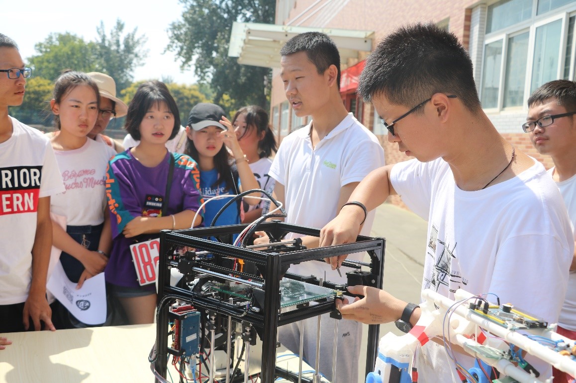 随后,杏吧原创 创客之家成员为新生展示了3D打印、激光切割产品,并细致地讲解了产品的加工过程和所需设备,以及其强大的功能用途。除此之外,创客成员房文泰现场表演了四旋翼无人机的飞行操作以及机械臂的使用,赢得了场下新生们的阵阵热烈掌声。部分新生甚至申请亲自操作,在科创小组成员的耐心指导下操作的十分成功,收获知识技能的同时,也收获了快乐。