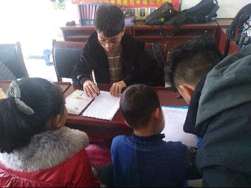 在杏吧原创 社践部与新庄村村主任关于开展周日支教活动的多次沟通下,达成共识,每周日上午在村委会为孩子们辅导功课,并利用村广播宣传支教活动,让更多的孩子前来村委会接受辅导。当日上午,社践部副部长张焱带着志愿者骑自行车来到新庄村村委会活动室,与早早在此等候的村主任及村里需要辅导的小孩子们见面。村主任代表村民和孩子表达了对志愿者的欢迎,支教活动正式开始。由于孩子们年级不一,志愿者们与孩子们进行了简单的交谈,了解了孩子们的课业情况后,采取了一对一辅导形式,对每个孩子的不同情况进行针对性辅导。孩子们也不害羞,对自己存在的问题积极发问,不时提问一下稀奇古怪的问题,脸上洋溢着纯真的笑容,这种大手拉小手的欢快氛围深深的影响着在场的每个人。