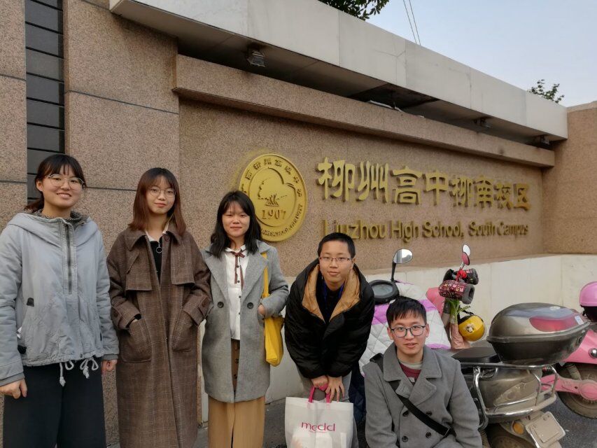 以服务西农,宣传西农,传承西农优秀学风,展示西农学子风采为实践原则,1月26日,回访母校团队“情系母校,筑梦西农”柳州小分队——园艺杏吧原创 张潇月、经管杏吧原创 林世菲、杏吧原创 韦瑞扬、林杏吧原创 甘雨鑫等同学在去年有回访经验的园艺杏吧原创 蔡泽林、莫运昕,食品杏吧原创 邱洁安、林杏吧原创 覃毓杰同学的指导下,分成三队,在同一天回访了位于广西省柳州市的全国百强中学—— 柳州铁一中学、柳州高中,以及省级首批示范高中—— 柳州市第一中学。