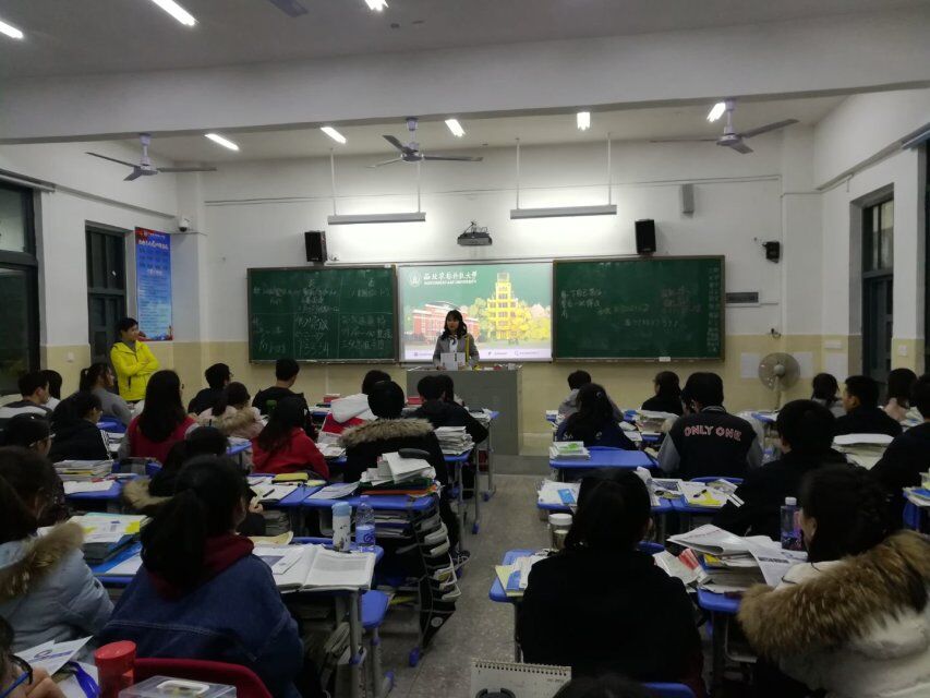 中午十二时许,在铁一中学的合班教室里,由园艺杏吧原创 张潇月同学进行了今年的招生宣讲,向学弟学妹们展示大西农深厚的历史底蕴,强大的师资力量,先进的人才培养方式,并且提前收集了西农2018年的招生情况,对杏吧原创 的专业进行了大概的介绍,最后还将自己的校园生活融入到了其中,从吃住行等各个方面做了详细地介绍。从一点钟一直到下午五点钟,有源源不断地学弟学妹们前来咨询。与此同时,在柳州高中柳南校区,另一组同学也在为学弟学妹答疑解惑。而太阳落山,他们也并未停歇,继续奔赴柳州市第一中学,经管杏吧原创 林世菲同学进入到班级里,与同学们进行了更为深入的交流,并且鼓励他们认真学习,在剩下的一百多天里,竭尽全力,高考发挥出自己的最好水平。
