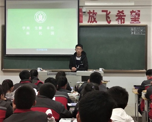 从1月中旬开始,小组就进入了紧张的筹备工作中,经过多次讨论商定后,确定了最终活动方案。小组成员分工合作,由康如意和任丽娟同学进行西农宣传单及明信片等资料的发放。同学们拿到明信片后,看到上面优美的景色时,顿时对西农抱有了憧憬和期盼,并期望像学姐学长那样进入西农。随后,赵立江同学做了简单的自我简绍,然后直入主题,播放西农宣传片。宣传片中介绍了西农的特色专业及优势学科,极大的激发了同学们的学习热情。紧接着结合PPT介绍了西农历史,西农科研,西农环境,全面展现了西农风采,并结合当前的高考形式向他们讲述了985的优势所在,满足了高三莘莘学子们对西农的好奇心。宣讲会后,同学十分热情,纷纷向学长学姐索要联系方式,以便能进一步了解西农。