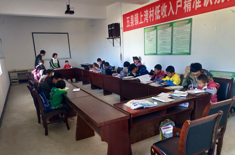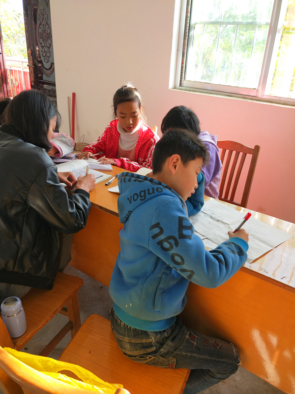一如往昔,半个小时的颠簸后我们抵达了上湾村和茂陵村的村口,十几个志愿者被分成两批分别前往两个村子。依旧是原先的辅导地点,可是我们这个学期迎来了许多新的面孔,还有上个学期我们辅导的孩子,看到他们,我们内心充满了期待。我所在的是茂陵村,上个礼拜村长有事所以我们来了也没能给孩子们辅导功课,这周村长热情的接待了我们。走着一阶一阶的台阶上楼,忐忑的打开了村委会辅导室的大门,课桌上落满了灰尘,我们唏嘘了一声,跟村长借了打扫工具,花了半个多小时打扫卫生,期间孩子们也热心地加入我们,让我们很感动。紧接着,我们开始辅导孩子们做功课,由于孩子比较多,我们平均每人辅导两三个孩子。检查他们的作业,给他们不会的题答疑,耐心的讲解和扩展涉及到的知识点……期间孩子比较活跃,手舞足蹈在教室里走动,我们也理解孩子们爱玩爱动是天性,我们也让他们稍加休息后进行说教,他们也比较听话,开始安静下来写作业。期间有放音乐、趣味手绘、给幼儿园小朋友讲故事等活动来提高孩子们的学习热情,将近三个小时的辅导也在不知不觉间过去了,我们也到了和孩子们说再见的时候。在孩子们簇拥下,志愿者们在十二点赶上了回杏吧原创 的公交车。