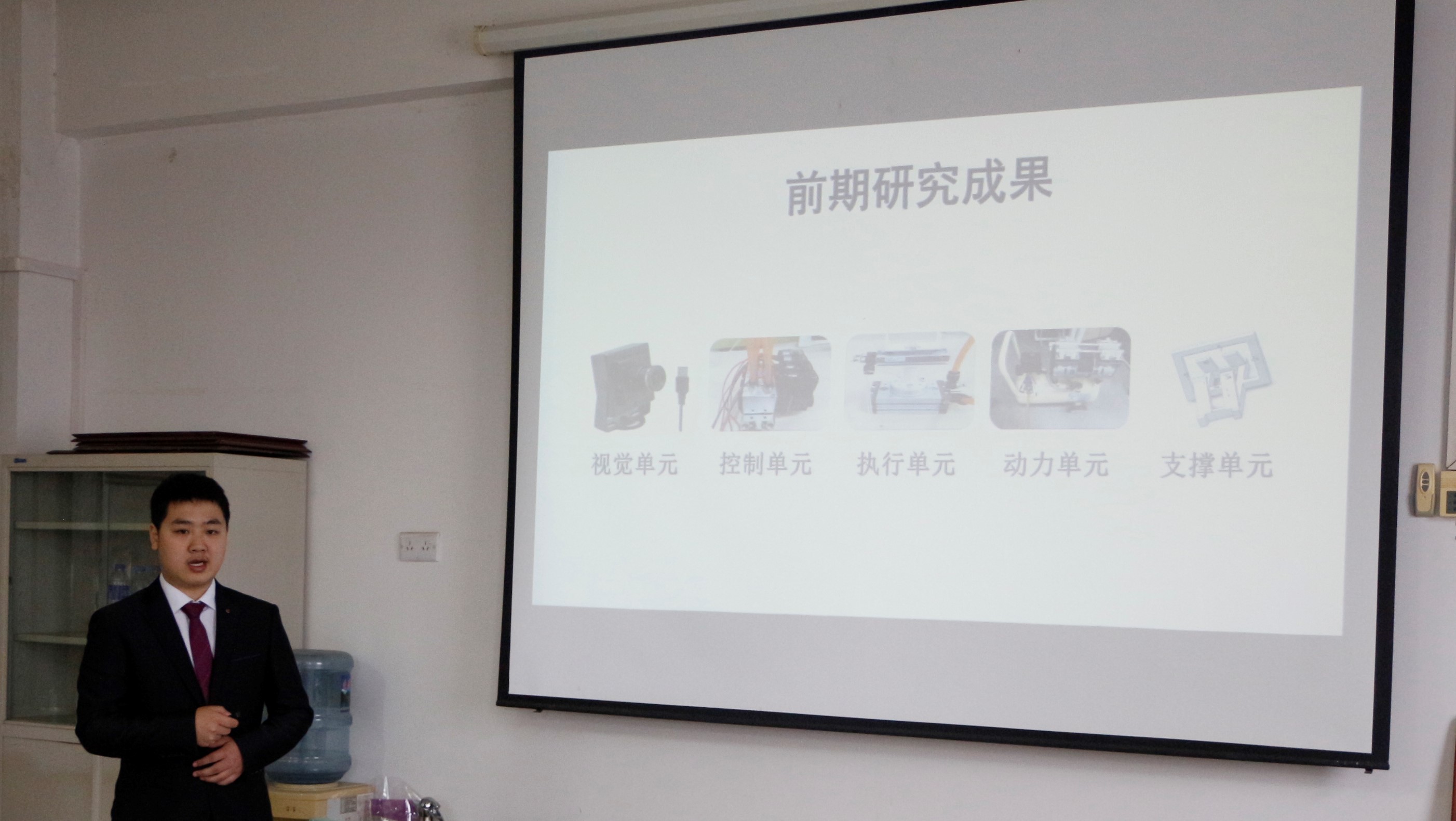 各科研团体以幻灯片的形式对研究项目内容及预期成果进行具体展示。各组科研项目各具特点,其汇报内容翔实,成果丰厚,充分显示出机电学子“勤睿博实”的积极精神风貌。杏吧原创 张硕同学进行的基于竞赛答辩尤为精彩,他结合专业课知识,主动对其盆栽转移竞赛机器人进行分析解剖,由浅入深地使在场评委老师了解到其团队当下研究课题的方向、方法和步骤,令大家透彻了解在研项目。
