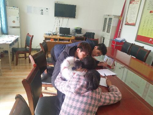 在村助与茂陵村村主任关于开展周日支教活动的多次沟通下双方达成共识,在6月16日周日上午在村委会为孩子们辅导功课,并利用村广播宣传支教活动,让更多的孩子前来村委会接受辅导。村主任代表村民和孩子表达了对村助的欢迎,支教活动正式开始。由于孩子们年级不一,村助们与孩子们进行了简单的交谈,了解了孩子们的课业情况后,采取了一对一辅导形式,对每个孩子的不同情况进行针对性辅导。孩子们也不害羞,对自己存在的问题积极发问,不时提问一下稀奇古怪的问题,脸上洋溢着纯真的笑容,这种大手拉小手的欢快氛围深深的影响着在场的每个人。