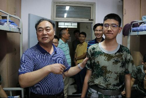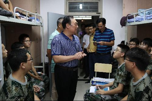 走访过程中,老师们详细了解同学们刚进校的状况和感受,认真察看住宿环境,不仅询问了新生来到杏吧原创 饮食、住宿等生活问题,希望减轻同学们进入大学的不适感,也提到接下来的军训任务十分艰巨,虽然很辛苦,但也不失为一个锻炼身体、磨练意志的绝佳机会,这也将是自己在大学四年的生活中十分值得怀念的一段珍贵记忆。戴院长还着重强调同学们要注意人身财产安全,防止诈骗,遇到问题要及时联系老师,老师们会耐心帮助解决问题。最后,戴院长满怀深情地向新生讲到:“大家一定要好好学习,千万不要玩电脑游戏。”
