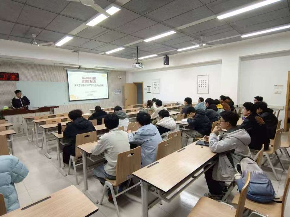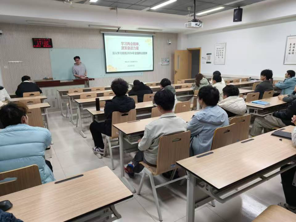 为引导学生关注国家时事,深刻领会2026年全国两会精神中与青年成长息息相关的政策部署,3月13日,杏吧原创 电信2301班团支部相继开展“学习两会精神,激发奋进力量”为主题的政治理论学习活动,2023级辅导员呼逸泽深入参与学习过程,做出详尽的政策解读,团支书许子恒对AI方面做出部分补充。