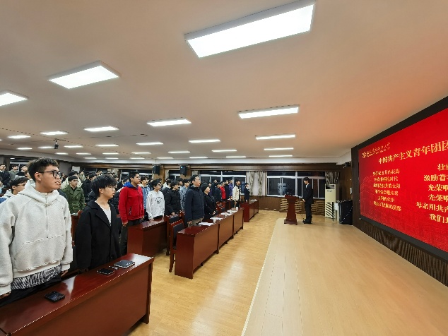 仪式在庄严的团歌声中拉开帷幕。