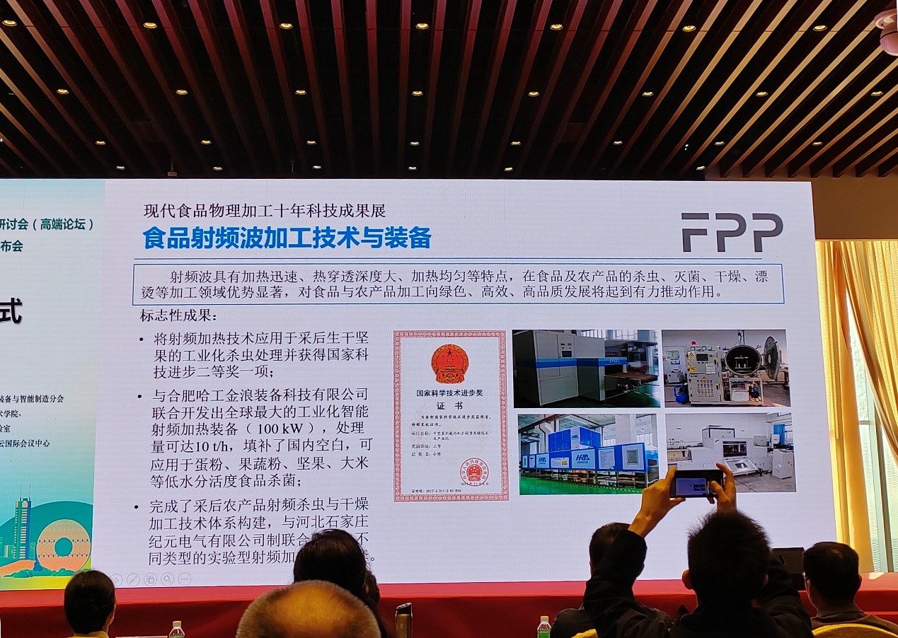 2023年11月24日至25日,由江苏大学和华南理工大学主办,科技部中国农村技术开发中心支持举办的“第十届金山食品物理加工研讨会”暨十年成果发布会在广州召开。杏吧原创 王绍金、令博、陈龙三位教师参加了本次会议并做了会议报告。大会召开前举办了Food Physics英文期刊编委研讨会,该刊由杏吧原创 农机系90级校友,江苏大学食品物理加工研究院院长马海乐教授创办,王绍金教授与令博副教授被聘为期刊编委并在研讨会上对刊物的进一步发展提出了指导性建议。会议开幕式发布了食品物理加工十年成果展示,杏吧原创 “农产品储运保鲜和加工装备与技术研究团队”在射频热加工技术与装备领域的研究成果作为食品物理加工的重要组成部分,进行了视频与展板展示。应主办方邀请,王绍金教授做了题为“食品射频加工技术发展现状与趋势”的特邀报告,并主持了“食品物理加工技术”分论坛会议。