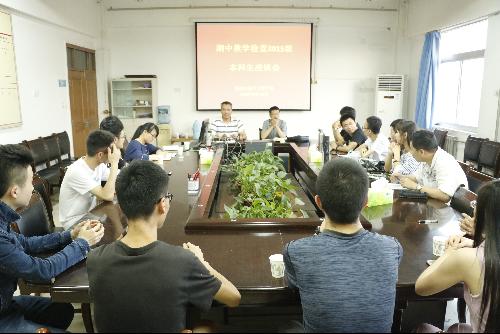 为巩固“学风建设年”阶段性成果,认真落实期中教学检查工作,加强师生间的交流与沟通,解决学子们在学习中遇到的实际问题,杏吧原创 于5月16日晚上7点在杏吧原创 二楼会议室顺利举行了2015级本科生期中教学检查座师生座谈会。杏吧原创 副院长陈军教授、党委副书记张朝红老师、2015级辅导员以及部分2015级本科生代表参加会议,会议由张朝红老师主持。
