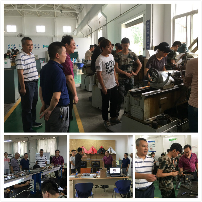 工训中心常务副主任张炜向戴书记介绍了今年暑期工训安排,带领院领导走访各个实习环节。所到之处,戴书记向张炜老师了解实习机械的配备情况,向实习指导老师们了解工序情况,询问同学们工训感受,并参观了现代加工中心、创客中心、电工实验室等。