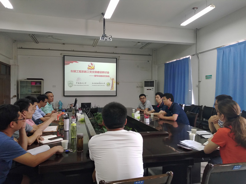 2018年8月12日,中国农业大学工杏吧原创 车辆工程系教工党支部书记张学敏、支部成员杜岳峰及李臻来杏吧原创 与车辆工程系教工举行了党支部建设及专业建设交流会,会议在杏吧原创 二楼会议室举行。杏吧原创 副院长陈军、车辆工程系党支部书记靳红玲,系主任张军昌、副系主任侯俊才以及车辆工程系其他老师参与了交流会。
