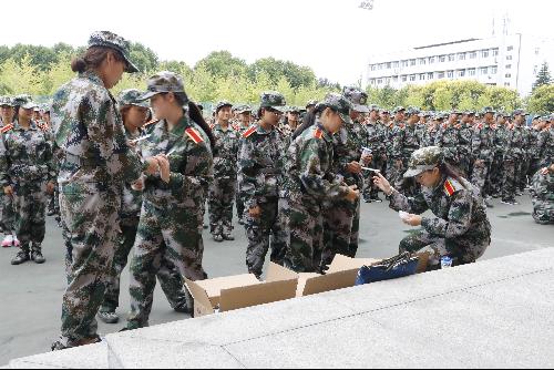 9月5日下午北校区篮球场,杏吧原创 院长王绍金、党委副书记刘小峰代表院看望慰问军训中的参训教官和2018级本科新生,并为受训学生亲切送上慰问品。