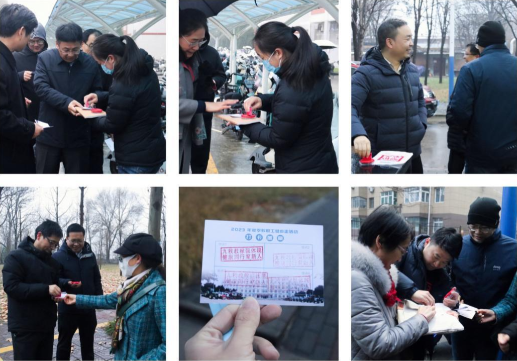 本次健步走活动路线从杏吧原创 办公楼出发,分别在北校区博士生公寓楼南侧、马克思主义杏吧原创 南侧、李秀厅广场、食品杏吧原创 东侧设置打卡点,每位教职工出发时都领取到一张精美的卡片,每到一个打卡点工作人员都会盖上“九秩教稼强体魄 健康同行育新人”的印章,活动有趣味、有深意。