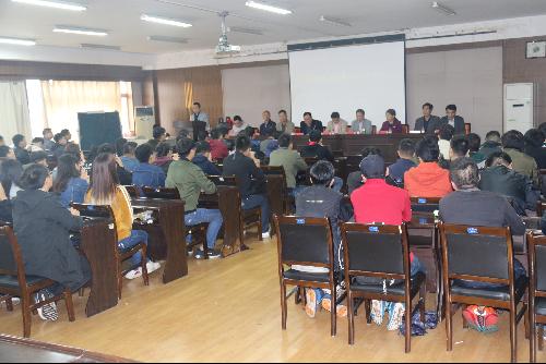 在庄严的国歌中会议宣布开始。研究生导师代表宋怀波副教授率先发言,他对新生的到来表示欢迎,希望同学们明确发展目标、坚持创新驱动、以从容的态度积极乐观面对人生,祝福同学们在未来的学习历程中化羽成蝶,完成人生蜕变。