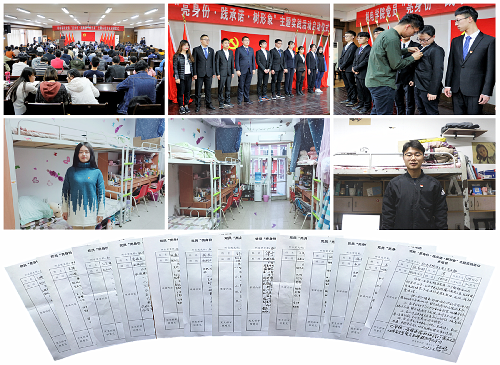 用“标志”约束行为。制作了“党员宿舍”和“党员床位”标志,在党员宿舍门上张贴“党员宿舍”标志、在个人床位张贴“党员床位”标志,对党员宿舍和党员床位进行重点检查和考核。将党员宿舍卫生检查结果与“五星级文明宿舍”评比挂钩,提高卫生检查标准,并进行不定期抽检。小小的标志承载着每一位学生党员的荣耀,更是时刻提醒学生党员铭记自己的党员身份和自己肩上担负的责任,在学生宿舍区域树立党员良好形象,营造温馨整洁的宿舍氛围。
