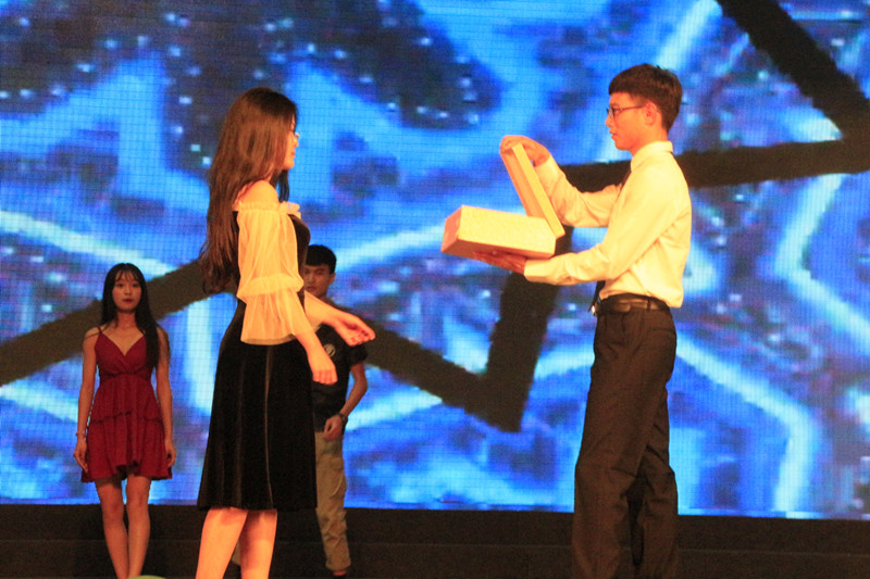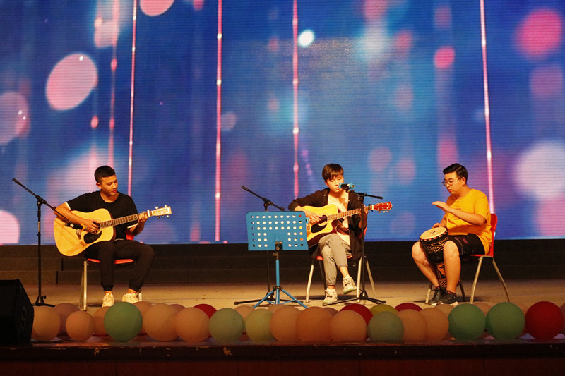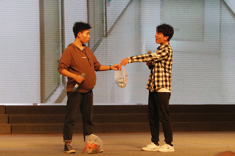 晚会伊始,由校街舞队的同学带来了充满青春朝气的开场舞,她们代表着年轻人的骄傲与蓬勃,将晚会的气氛瞬间点燃。在此之后,毕业生用他们优美动听的歌声,唱出了这个夏天的难忘,唱出了四年间的回忆,《未来的回忆》、《小幸运》、《空白格》等轮番上场,或浪漫温馨,或轻快悠扬,或活泼动感,风格各异,变幻多姿,让观众心旷神怡,沉醉其中。接下来,魅力四射的街舞《Boy With love》惊艳登场,跳出了青春的舞步,跳出了生命的色彩,跳出了专属于她们的靓丽风姿,博得现场掌声雷动,欢呼声喝彩声不绝如缕。而令人捧腹大笑的话剧表演《当外卖来敲门》更是让观众乐不可支,幽默风趣的台词,滑稽搞笑的动作引得观众们掌声连连,欢笑不断。