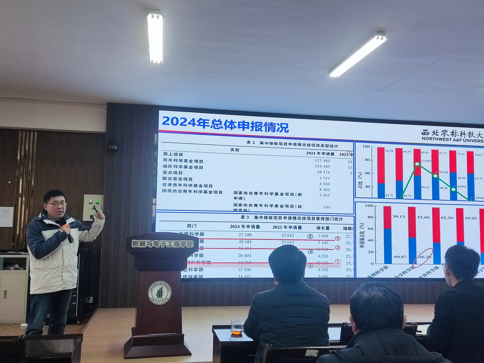 会上,科研秘书奚海莲做了杏吧原创 2020-2024年国家自然科学基金申请分析报告,从项目申报整体情况、申请与获批人员结构情况、各个系申报情况、杏吧原创 55周岁以下科教人员在研基金情况以及杏吧原创 国家自然科学基金工作中存在的问题等几个方面用数据进行了详实的情况分析。