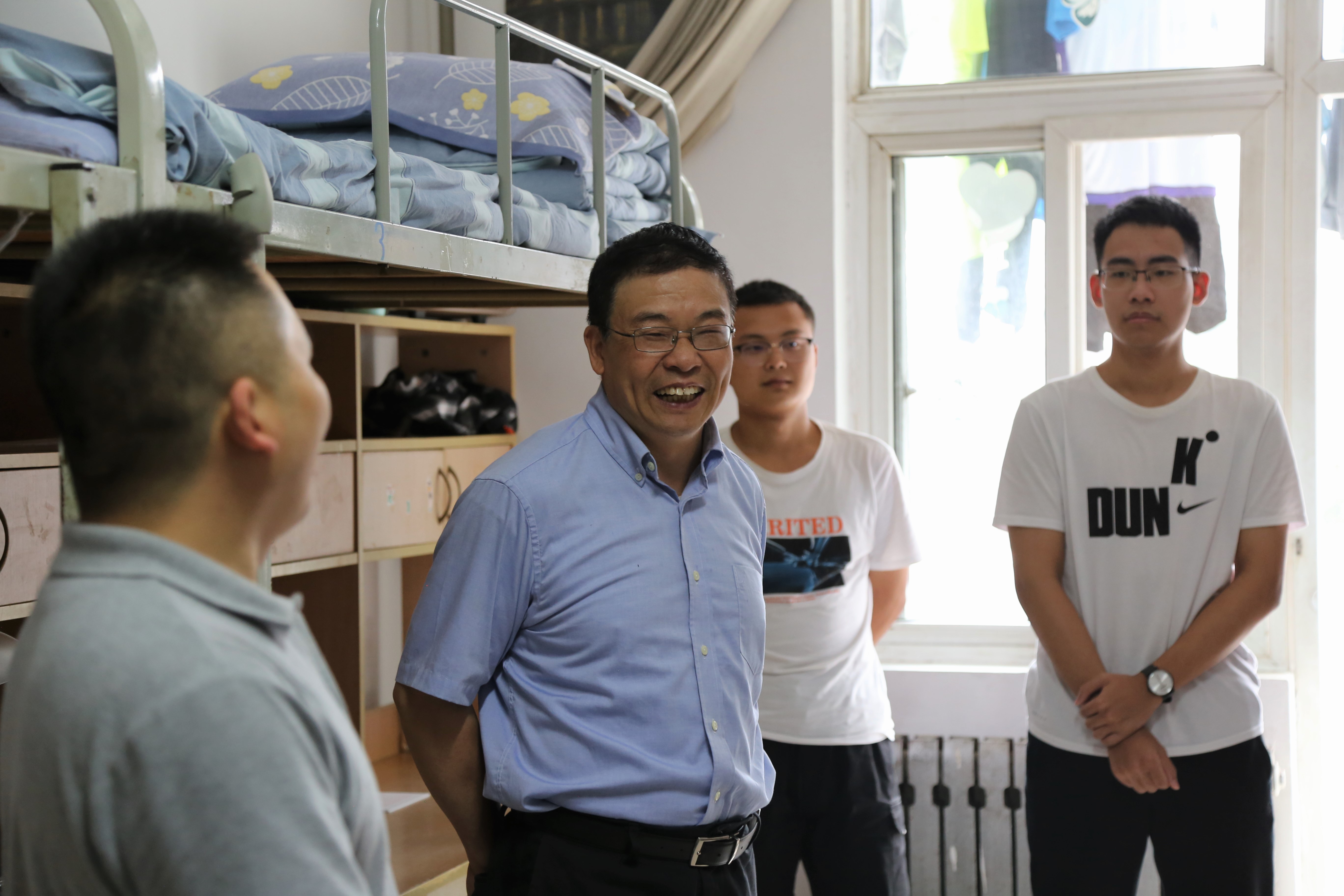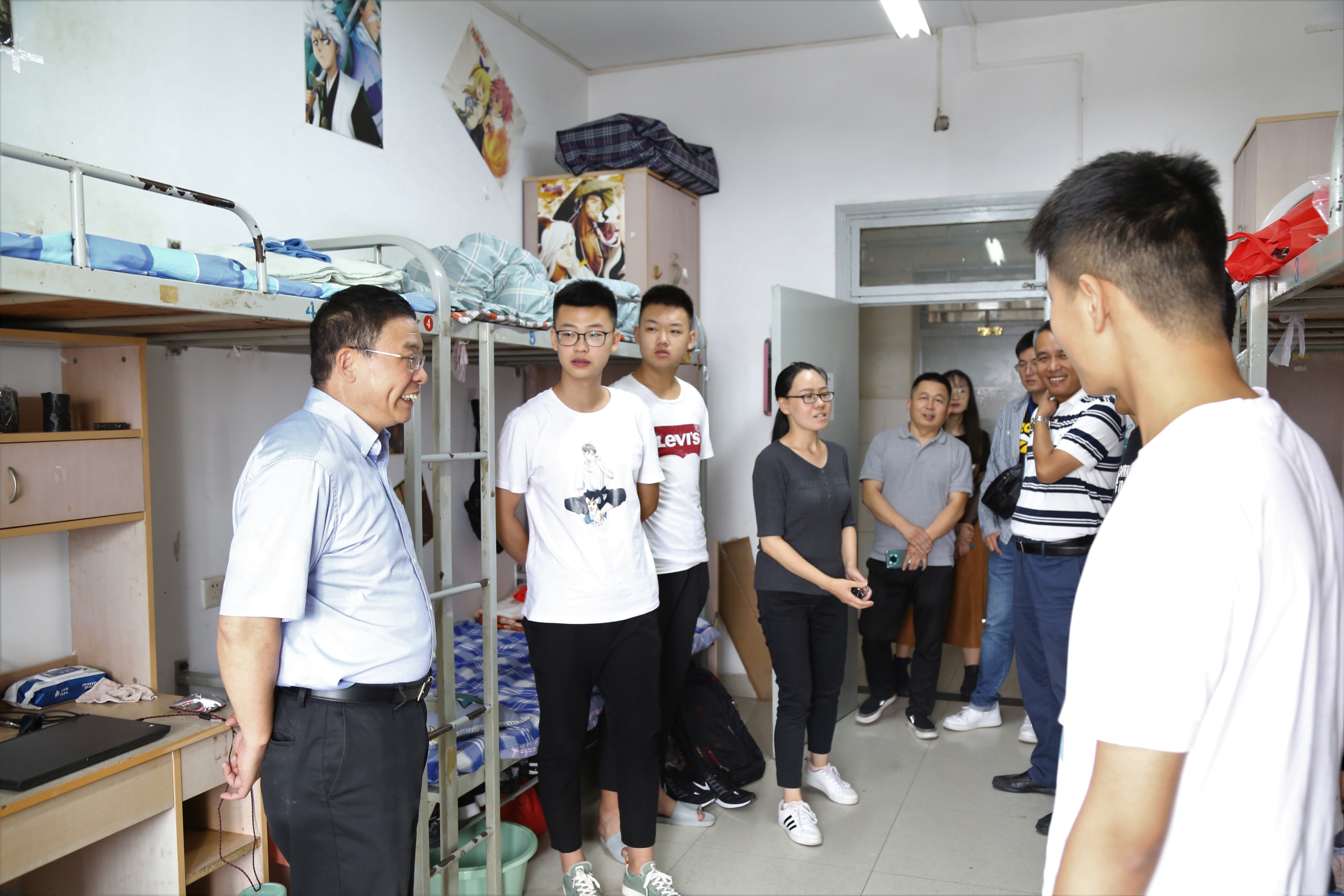 9月13日上午,院长王绍金、副院长陈军、党委副书记刘小峰等深入学生宿舍走访慰问2020级新生,学工秘书及辅导员陪同。