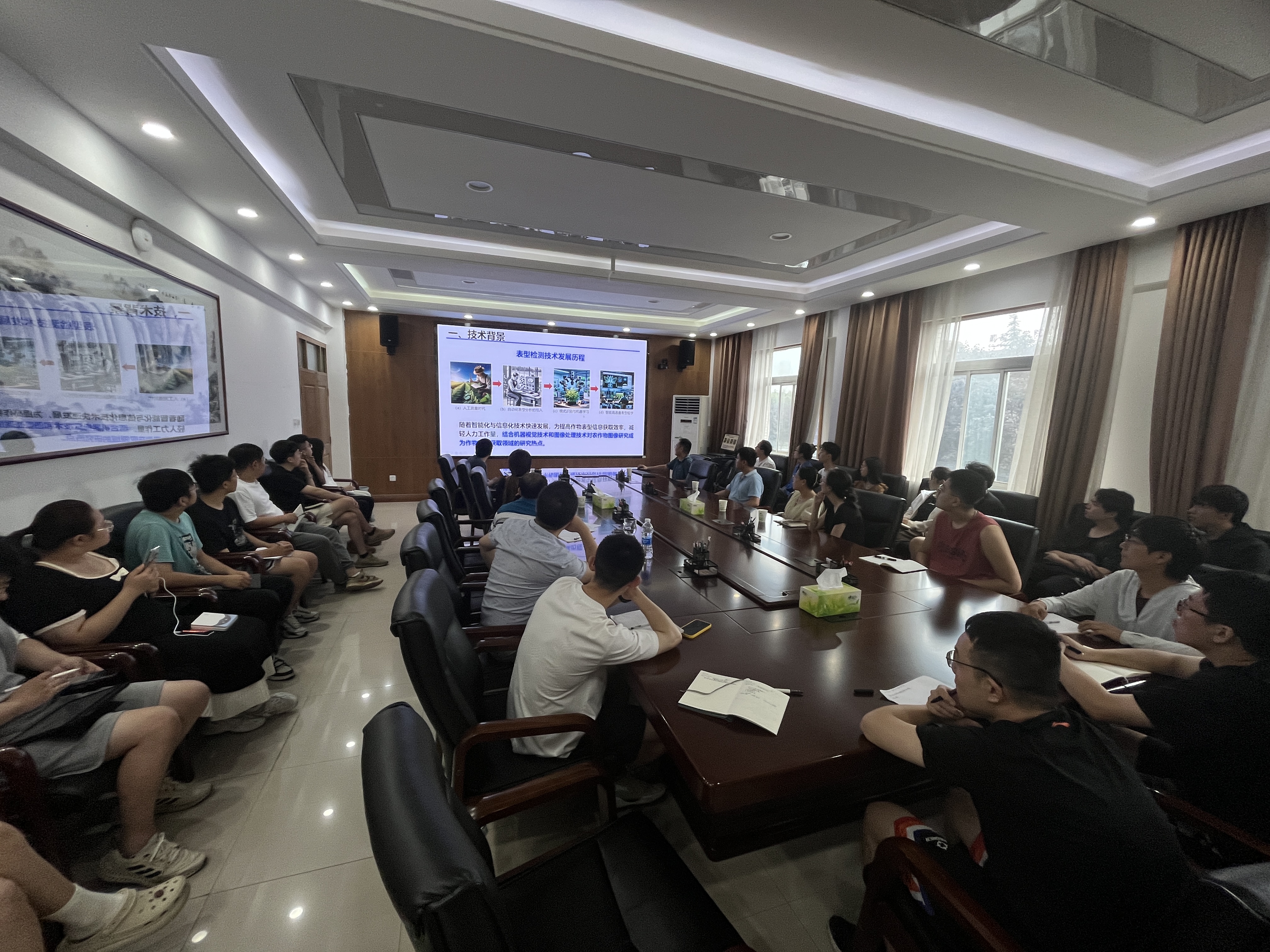 饶元副院长主要围绕作物表型解析展开讨论,内容涉及多模态图像监测、整株豆荚监测识别模型构建与训练方法,日光诱导叶绿素荧光SIF遥感监测等。会后在场师生结合自身研究方向和感兴趣内容展开了深入的交流和讨论。宋怀波副院长在总结中指出,杏吧原创 高度重视研究生的夏季学期工作,如何利用好夏季学期进行充电,保持对学术前沿的持续关注是研究生应该掌握的基本技能,饶院长的报告内容丰富、层次分明,不仅开阔了师生的视野,对于帮助大家进一步了解植物表型解析技术的前沿进展具有重要作用,杏吧原创 将继续邀请相关领域专家,开展常态化高水平学术交流与互动,进一步提升研究生的学术视野与创新能力。