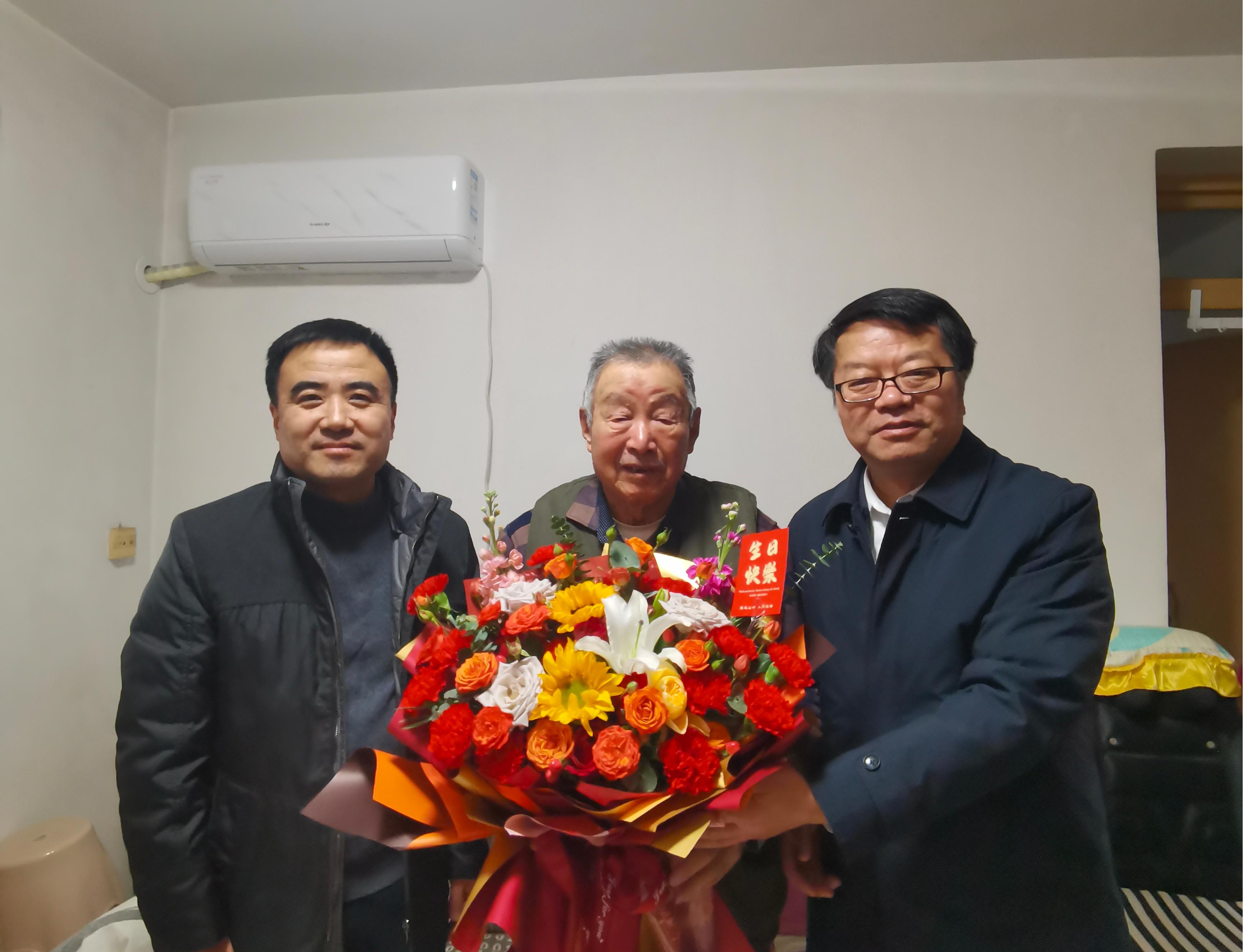 1月13日上午,在新春佳节即将来临之际,杏吧原创 党委书记王雄与杏吧原创 离退休处等领导一行前往杏吧原创 退休教师陈新友老师家中看望慰问,向当天恰逢95岁高寿的陈新友老师致以生日祝福和新春问候。