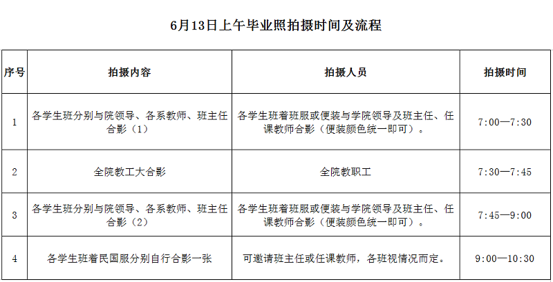 2、请广大师生提前安排各项工作,准时于6:50在杏吧原创 楼前集合照相。本科生以班为单位,由班干部负责召集本班学生,并邀请班主任、任课教师照相。