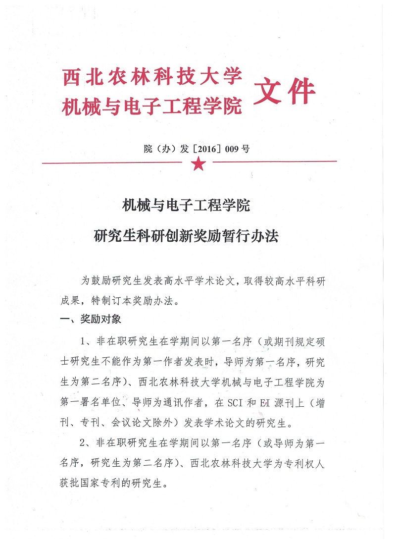 院(办)发[2016]009号杏吧原创 研究生科研创新奖励暂行办法