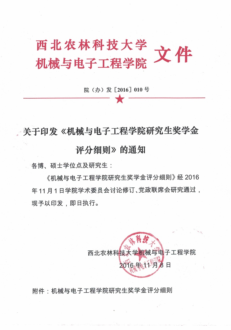 院(办)发[2016]010号关于印发《杏吧原创 研究生奖学金评分细则》的通知